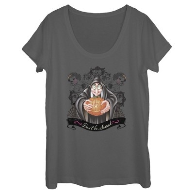 Mirror, mirror, on the wall…the Disney Snow White and the Seven Dwarves Halloween Witch Juniors' Racerback Tank Top is the fairest of them all! This fun Halloween sweatshirt features the Evil Queen offering up a jack-o'-lantern with the title "Don't Be Scared" below, and sketches of Snow White in the background.