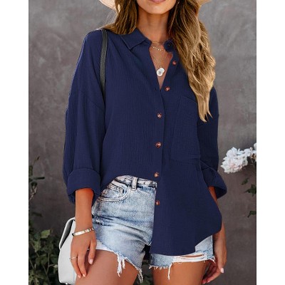 Women's Soft Boyfriend Shirt Classic Button Down Long Sleeve Effortless Comfort