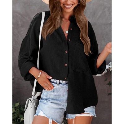 Crafted from ultra-soft, skin-friendly fabric, this women's button-down shirt features a relaxed boyfriend fit for effortless comfort. The breathable material provides lightweight warmth perfect for fall and winter layering.