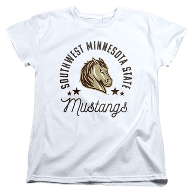 • SOUTHWEST MINNESOTA STATE UNIVERSITY MUSTANGS WOMEN'S T SHIRT - Our women's t-shirt looks stylish and is great for a casual party, costume party, theme party, streetwear or simple loungewear to enjoy in the comfort of your home