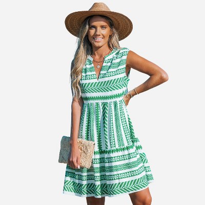 • A: The dress has a sleeveless fit, making it ideal for warm weather.