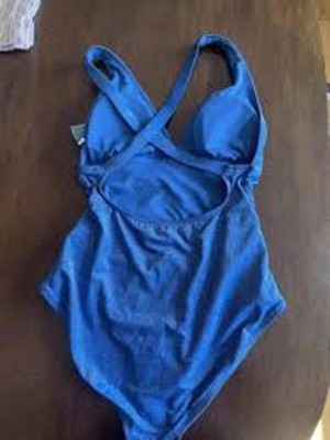 Flaunt a fashionable look at the beach or pool with the Lurex Plunge Neck Full Coverage One-Piece Swimsuit from Shade & Shore™. This blue one-piece swimsuit features a deep V-neckline with shirring along the waist for a gorgeous look. Made of soft and stretchy fabric with full lining for comfortable wear, this lurex swimsuit provides full coverage, and the removable cups offer customizable coverage.