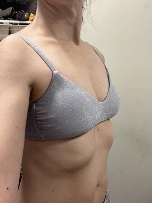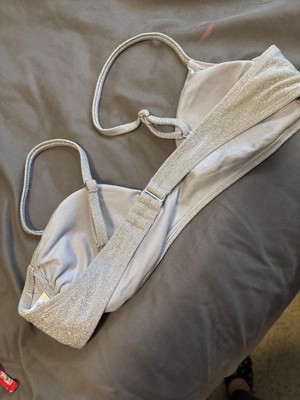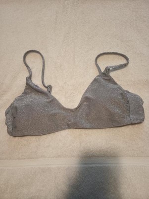 The Wild Fable™ Women's Sparkle Scooped Bralette Bikini Top in Silver is a beautiful and shiny bralette bikini top HOT for the summer. I have a large chest and was spilling out the top of the size large top. It is super beautiful and fun!