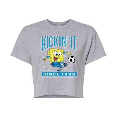 Spongebob Squarepants - Bikini Bottom Surf - Juniors Cropped Graphic T-Shirt - Dive into the fun of Bikini Bottom with SpongeBob SquarePants graphic apparel! Featuring colorful designs of SpongeBob, Patrick, Squidward, Sandy, and more, this collection brings the show's quirky humor and unforgettable moments to life. Perfect for fans of all ages, these pieces add a splash of personality to any wardrobe.