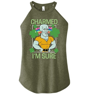 SpongeBob SquarePants - Charmed I'm Sure - Juniors High Neck Tank Top - Dive into the fun of Bikini Bottom with SpongeBob SquarePants graphic apparel! Featuring colorful designs of SpongeBob, Patrick, Squidward, Sandy, and more, this collection brings the show's quirky humor and unforgettable moments to life. Perfect for fans of all ages, these pieces add a splash of personality to any wardrobe.