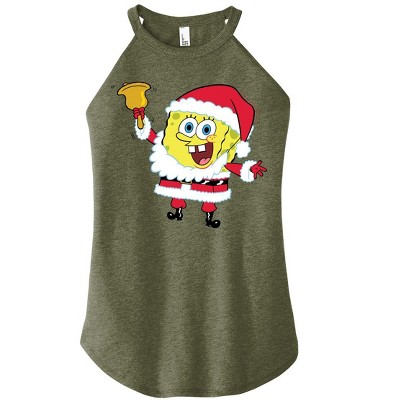 Women's SpongeBob SquarePants Dear Santa Graphic High Neck Tank - Heather Military Green - Medium