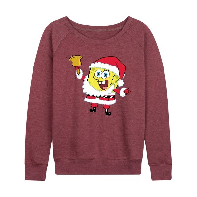 Women's SpongeBob SquarePants Dear Santa Lightweight French Terry Wide Neck Long Sleeve Graphic Shirt - Heather Maroon - Small
