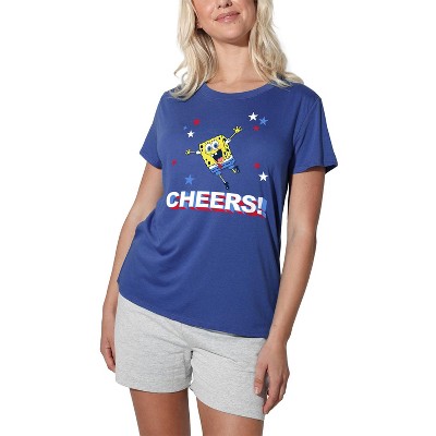 Women's SpongeBob SquarePants Gary The Snail Lightweight French Terry Wide Neck Long Sleeve Graphic Shirt - Heather Indigo - Medium