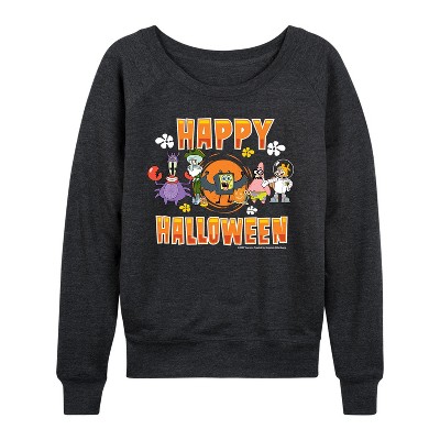 SpongeBob SquarePants - Happy Halloween - Women's Lightweight French Terry Long Sleeve Shirt - Dive into the fun of Bikini Bottom with SpongeBob SquarePants graphic apparel! Featuring colorful designs of SpongeBob, Patrick, Squidward, Sandy, and more, this collection brings the show's quirky humor and unforgettable moments to life. Perfect for fans of all ages, these pieces add a splash of personality to any wardrobe.
