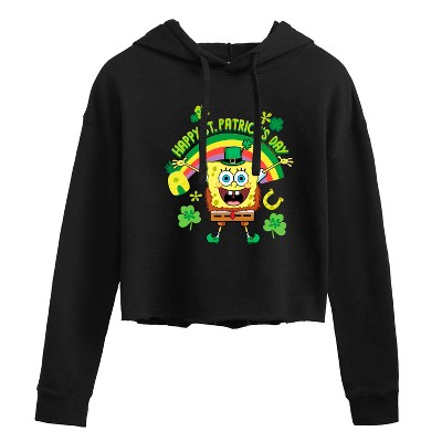 SpongeBob SquarePants - Happy St. Patricks Day - Juniors Cropped Pullover Hoodie - Dive into the fun of Bikini Bottom with SpongeBob SquarePants graphic apparel! Featuring colorful designs of SpongeBob, Patrick, Squidward, Sandy, and more, this collection brings the show's quirky humor and unforgettable moments to life. Perfect for fans of all ages, these pieces add a splash of personality to any wardrobe.