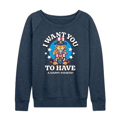 Women's SpongeBob Squarepants Happy St Patricks Day Lightweight French Terry Wide Neck Long Sleeve Graphic Shirt - Heather Indigo - Medium
