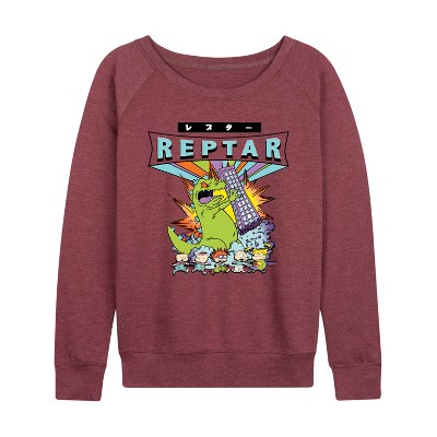 Women's Spongebob Squarepants Lessons Lightweight French Terry Wide Neck Long Sleeve Graphic Shirt - Heather Maroon - Small
