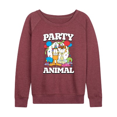 Women's SpongeBob Squarepants Prone To Shenanigans And Malarkey Lightweight French Terry Wide Neck Long Sleeve Graphic Shirt - Heather Maroon - Small