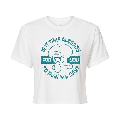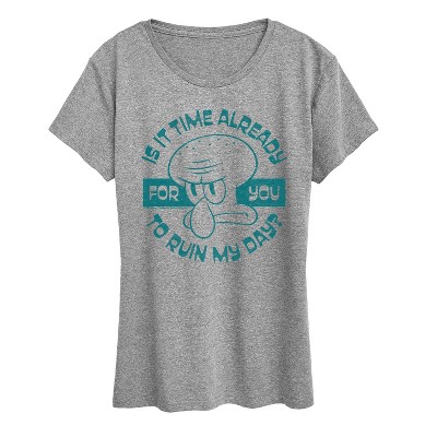 Spongebob Squarepants - Ruin My Day - Women's Short Sleeve Graphic T-Shirt - Dive into the fun of Bikini Bottom with SpongeBob SquarePants graphic apparel! Featuring colorful designs of SpongeBob, Patrick, Squidward, Sandy, and more, this collection brings the show's quirky humor and unforgettable moments to life. Perfect for fans of all ages, these pieces add a splash of personality to any wardrobe.