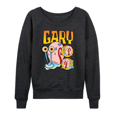 Women's - SpongeBob SquarePants - SpongeBob and Gary Lightweight French Terry Wide Neck Long Sleeve Graphic Shirt