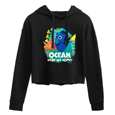 Women's SpongeBob SquarePants Spongebob and Jellyfish Cropped Graphic Hoodie - Black - Small