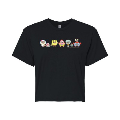 SpongeBob SquarePants - Spongebob and Jellyfish - Juniors Cropped Cotton Blend T-Shirt - Dive into the fun of Bikini Bottom with SpongeBob SquarePants graphic apparel! Featuring colorful designs of SpongeBob, Patrick, Squidward, Sandy, and more, this collection brings the show's quirky humor and unforgettable moments to life. Perfect for fans of all ages, these pieces add a splash of personality to any wardrobe.