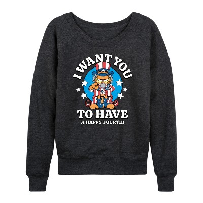 Women's SpongeBob Squarepants Spongebob Happy St Patricks Day Lightweight French Terry Wide Neck Long Sleeve Graphic Shirt - Heather Charcoal - Medium