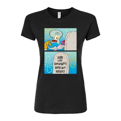 SpongeBob SquarePants - Squidward Bah Humbug - Juniors Cropped Cotton Blend T-Shirt - Dive into the fun of Bikini Bottom with SpongeBob SquarePants graphic apparel! Featuring colorful designs of SpongeBob, Patrick, Squidward, Sandy, and more, this collection brings the show's quirky humor and unforgettable moments to life. Perfect for fans of all ages, these pieces add a splash of personality to any wardrobe.