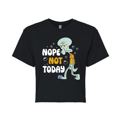 SpongeBob SquarePants - Squidward Bah Humbug - Juniors Cropped Cotton Blend T-Shirt - Dive into the fun of Bikini Bottom with SpongeBob SquarePants graphic apparel! Featuring colorful designs of SpongeBob, Patrick, Squidward, Sandy, and more, this collection brings the show's quirky humor and unforgettable moments to life. Perfect for fans of all ages, these pieces add a splash of personality to any wardrobe.