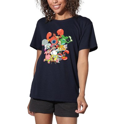 Women's Spongebob Squarepants The Whole Gang Loose T-Shirt Navy Large