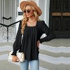 Women's Square Neck Textured Knit Top - Long Sleeve Pleated Detail Basic Tee for Casual & Office Wear