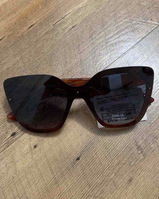 Lend on-trend style to your eyewear collection with these Square Shield Sunglasses from A New Day™. In a square shape, these shield sunglasses features a plastic brown frame that blends beautifully with the multicolored lenses. Plus, UV protection helps keep your eyes safe from the sun, making these glasses a sunny-day accessory you'll feel good about sporting. Keep them close at hand to finish off any outfit with effortlessly cool style.