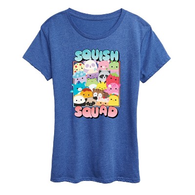 Squishmallows - Mooody Cow Grid - Women's Short Sleeve Graphic T-Shirt - Snuggle up in style with graphic apparel featuring officially licensed art from Squishmallows! Show off your favorite ultra-soft plush pals like Cam the Cat, Fifi the Fox, and Malcolm the Mushroom with colorful, cozy designs that bring the cuteness and comfort of the Squishmallows squad to your everyday look.