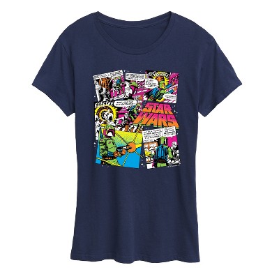 Women's Star Wars Boba Fett Comic Strip Lightweight French Terry Wide Neck Long Sleeve Graphic Shirt - Heather Indigo - X-Large
