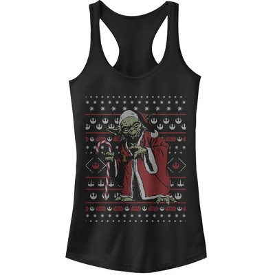 Endor is known for its forest terrain so you'll be sure to find the perfect Christmas tree to decorate with the help of the Star Wars Christmas Logo Ornaments Women's Racerback Tank Top! This festive relaxed fit Star Wars Christmas tank shows off the Star Wars logo with tree ornaments in the shape of Yoda, Leia, 3-CPO, and more down the front.