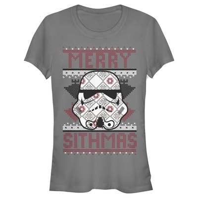 Calling all stormtroopers! Don't settle for coal in your stocking this year when you can ask for a Star Wars Christmas Merry Sithmas Women's Racerback Tank Top instead! A festive stormtrooper helmet is framed by "Merry Sithmas" on this Christmas Star Wars tank top.