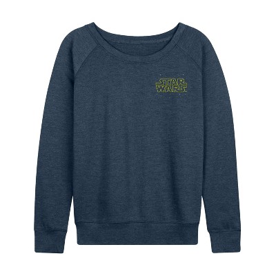 Star Wars - Constellation Logo - Women's French Terry Pullover Long Sleeve Shirt - Embark on an epic adventure with our officially licensed Star Wars graphic apparel collection! Celebrate the legendary saga with bold, iconic designs featuring your favorite characters, ships, and moments from a galaxy far, far away. Whether it's the fearless Luke Skywalker, the powerful Darth Vader, the wise Yoda, or the unforgettable Millennium Falcon, each piece captures the magic and excitement of the Star Wars universe. From graphic tees and hoodies to sweatshirts, this collection combines comfort with striking artwork that showcases the timeless appeal of the Star Wars story.