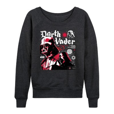 Women's Star Wars Darth Vader Grip On The Galaxy Lightweight French Terry Wide Neck Long Sleeve Graphic Shirt - Heather Charcoal - Large