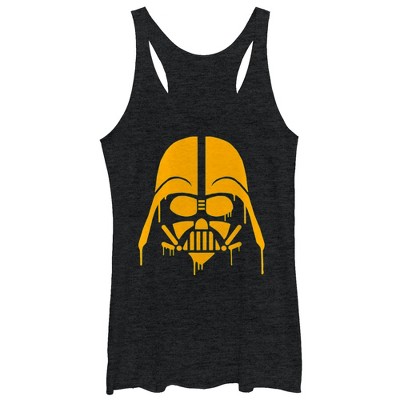 The pumpkins have gone to the dark side with the Star Wars Darth Vader Halloween Jack-O'-Lantern Heather Black Racerback Tank Top! An image of Darth Vader's helmet printed on the front of this awesome black Star Wars Halloween shirt features shades of orange and yellow to mimic the glow of a jack-o'-lantern.
