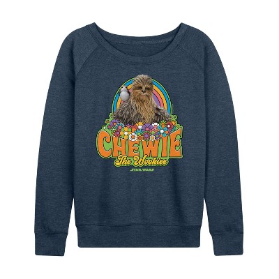 Women's Star Wars Ewok Protect The Forest Lightweight French Terry Wide Neck Long Sleeve Graphic Shirt - Heather Indigo - Large