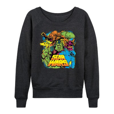 Women's Star Wars Fall Pumpkin Silhouette Lightweight French Terry Wide Neck Long Sleeve Graphic Shirt - Heather Charcoal - Medium
