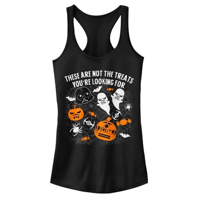 If you don't want anyone stealing your Halloween candy this year, then you need the Star Wars Halloween Not the Treats Women's Racerback Tank Top. Your favorite Star Wars characters like Darth Vader and R2-D2 get a Halloween makeover with "These Are Not the Treats You're Looking For" across the top of this tank.