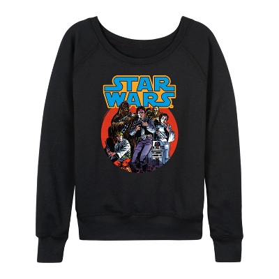 Women's Star Wars Han Chewy Mil Falc Lightweight French Terry Wide Neck Long Sleeve Graphic Shirt - Black - X-Large