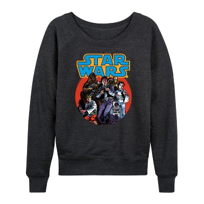 Women's Star Wars Han Chewy Mil Falc Lightweight French Terry Wide Neck Long Sleeve Graphic Shirt - Heather Charcoal - Large