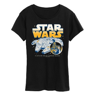 Star Wars - Han Solo Collage - Women's Short Sleeve Classic Fit Tee - Embark on an epic adventure with our officially licensed Star Wars graphic apparel collection! Celebrate the legendary saga with bold, iconic designs featuring your favorite characters, ships, and moments from a galaxy far, far away. Whether it's the fearless Luke Skywalker, the powerful Darth Vader, the wise Yoda, or the unforgettable Millennium Falcon, each piece captures the magic and excitement of the Star Wars universe. From graphic tees and hoodies to sweatshirts, this collection combines comfort with striking artwork that showcases the timeless appeal of the Star Wars story.