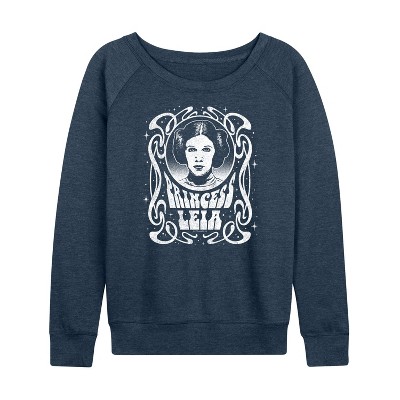 Women's Star Wars Han Leia Empire Strikes Back Lightweight French Terry Wide Neck Long Sleeve Graphic Shirt - Heather Indigo - Large