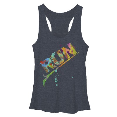 Sensing a disturbance in the Force? Must be the Star Wars Logo Heather Navy Blue Racerback Tank Top! Every Star Wars fan needs a soft and breathable top like this one featuring the classic Star Wars logo illustrated with a gradient fill that moves from blue into pink.