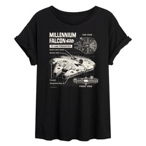 Women's - Star Wars - Millennium Falcon Schematic Women's Oversized Tee Oversized Graphic T-Shirt - 1 of 4