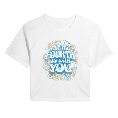Women's Star Wars Rebel Flower Logo Cropped Graphic T-Shirt - White - Small