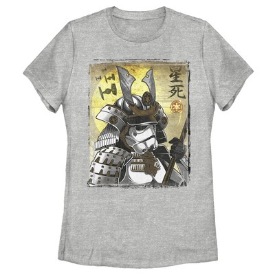 You may know them as the foot soldiers for the Empire, but stormtroopers get a whole new look on the Star Wars Samurai Stormtrooper Women's Racerback Tank Top. This unique Star Wars tee features a stormtrooper in Samurai gear with Kanji characters and TIE fighters behind him.