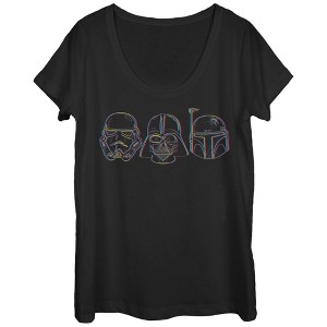 Women's Star Wars Stormtrooper Vader Fett Helmet Trio Scoop Neck - 1 of 3