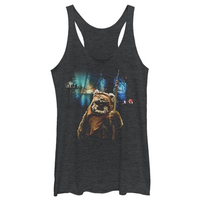 Women's Star Wars The Ewok Named Wicket Profile Picture Racerback Tank Top - Black Heather - Small