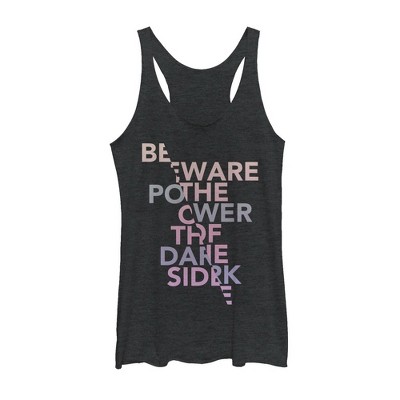 Everyone needs a little more Force in their life like the Star Wars The Last Jedi Force Be With You Heather Black Racerback Tank Top! Ombre style text fades from pink to orange down this soft black Episode VIII tank top that boasts the famous quote "May the Force Be With You".
