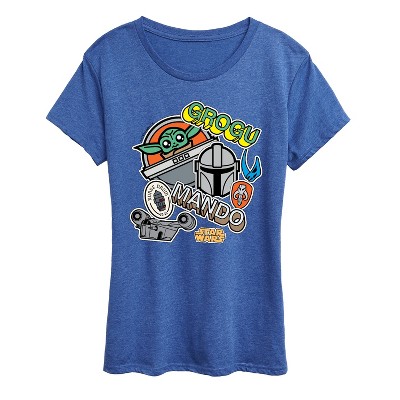 Women's Star Wars The Mandalorian Grogu Collegiate Short Sleeve Graphic T-Shirt - Heather Royal Blue - Large