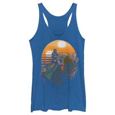 Women's Star Wars The Mandalorian Mythosaur Skull Logo Racerback Tank Top - Royal Blue Heather - X Large
